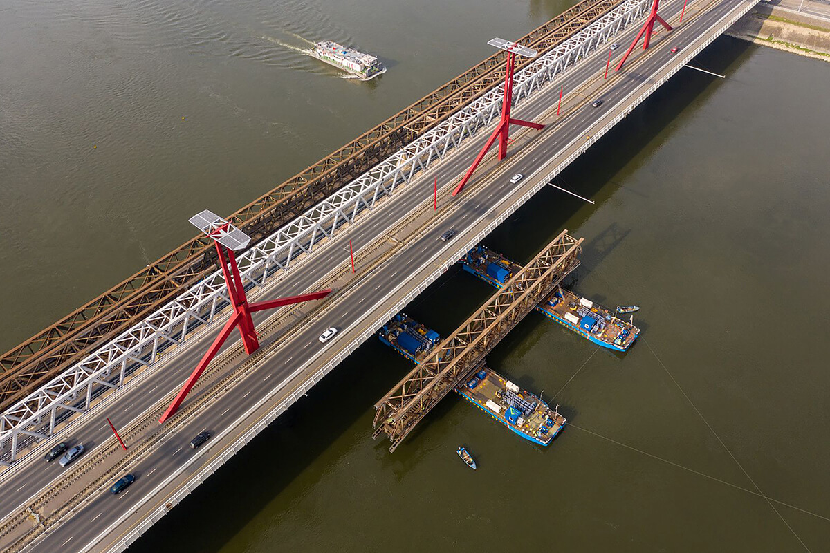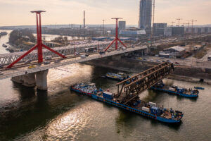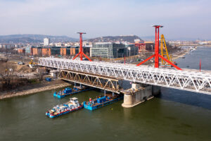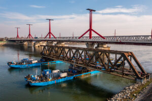 2020-ban két úszódarunk segítségével megtörtént az első szerkezet első elemének beemelése, melyet öt másik hídelem követett. Az így összeállt első hídszerkezetet 2021. április 25-én adták át a forgalomnak. Ezzel egyidőben kezdődött meg a középső híd bontása, majd újraépítése. A munkálatok során hat hídelemet kellett a helyszínen, vízi manőverek segítségével a helyére emelnünk. A Rákóczi híd közelsége miatt az elemeket alulról emeltük be és illesztettük a helyükre egy erre a célra tervezett és gyártott hidraulikus emelőmű segítségével.