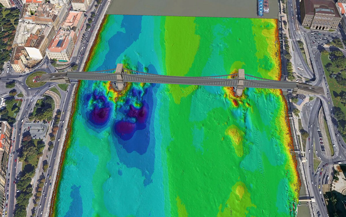 A Lánchíd 2021-ben kezdődő felújítási projektjének keretében mi végeztük a Duna medrének roncsmentesítését. A munkálatokat megelőzően 3D multibeam lézerszkennerünkkel a folyó 500 méteres szakaszán mederfelmérést végeztünk a híd környezetében, hogy a medertisztítási munkák kiszámíthatóbbak és biztonságosabbak legyenek. A felmérés során megtaláltuk a régi híd roncsait, elsüllyedt bójákat és feltérképeztük a budai oldal mederpillérei közelében lévő kimosódást. Leglátványosabb felfedezésünk azonban a híd 1914-es felújításakor történt baleset több, mint száz éves nyomai voltak. Összesen 74 darab acél lánclemez esett akkor a vízbe, melyből akkor csak 15 darabot tudtak kimenteni. A fennmaradó 59 láncelem több, mint 100 éven keresztül a mélyben várta, hogy megtaláljuk őket.