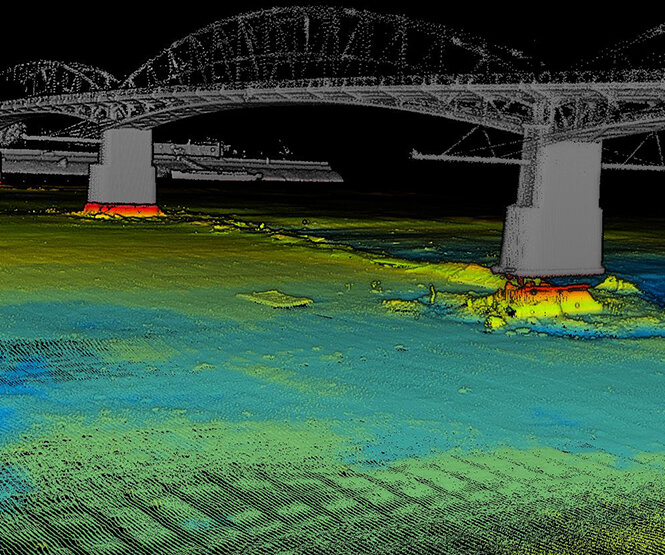 A medergeometriai felméréseket 3D-s Multibeam rendszerünkkel végezzük. Speciális eszközünk egy többsugaras szonár és egy hangsebességmérő szonda segítségével méri fel a meder állapotát majd cm pontossággal ad képet a mederfenéken található objektumok méretéről, távolságáról és alakjáról.